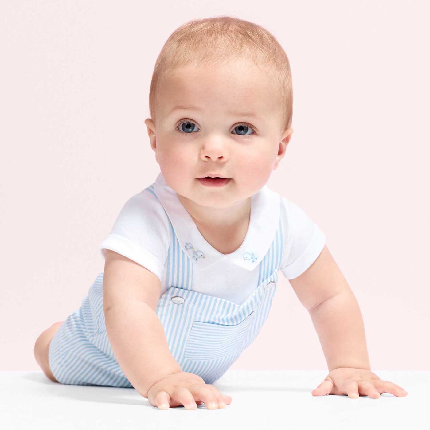 Baby boy short dungarees in striped poplin